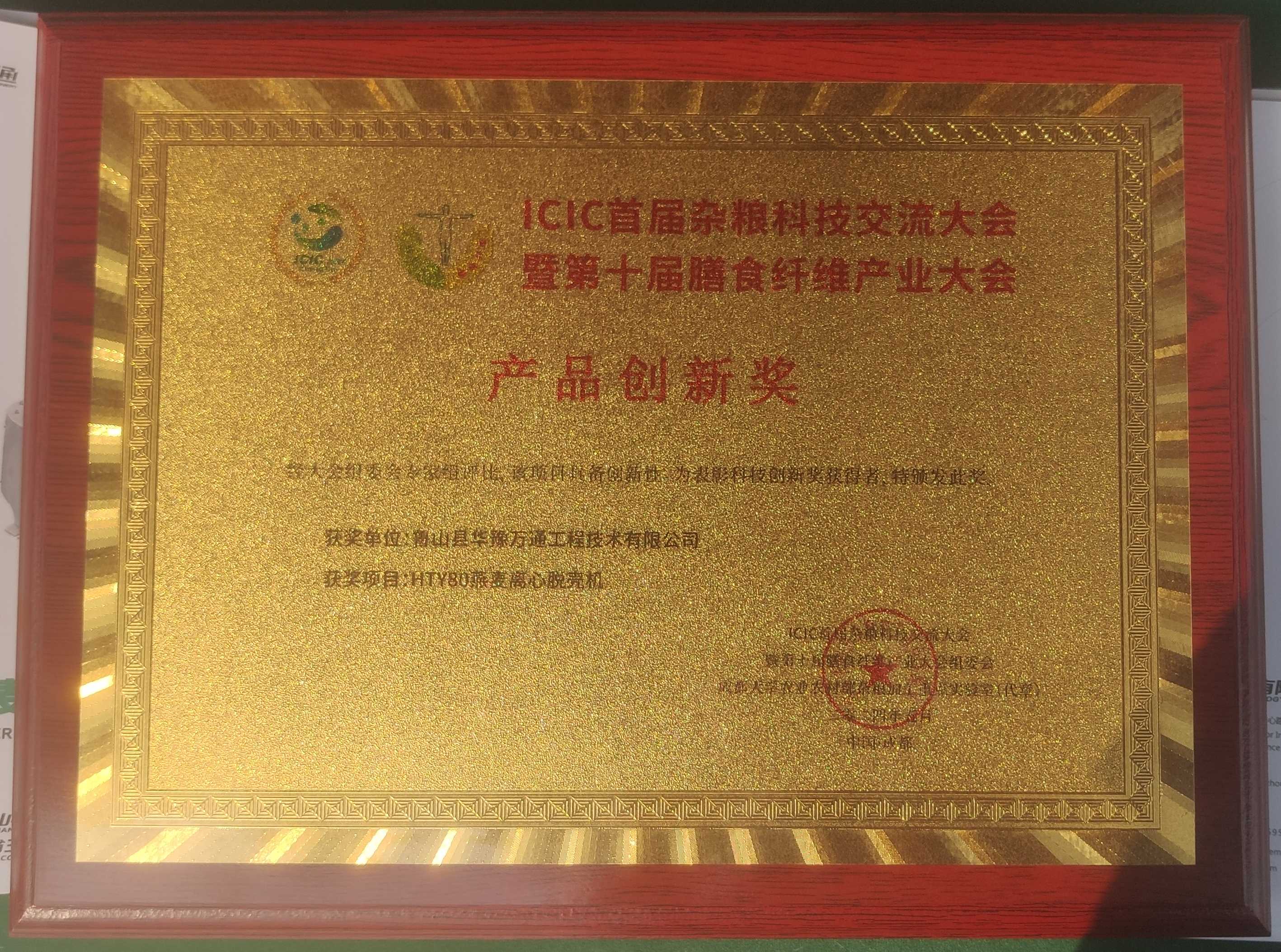 ICIC首屆雜糧科技交流大會暨第十屆膳食纖維產(chǎn)業(yè)大會于2024年5月24日至26日在成都盛大啟幕。華豫萬通智能糧機的HTY80智能燕麥離心脫殼機在此盛會上榮獲“產(chǎn)品創(chuàng)新獎”,這不僅是對華豫萬通技術實力的肯定,更是對華豫萬通在雜糧加工領域卓越貢獻的認可。