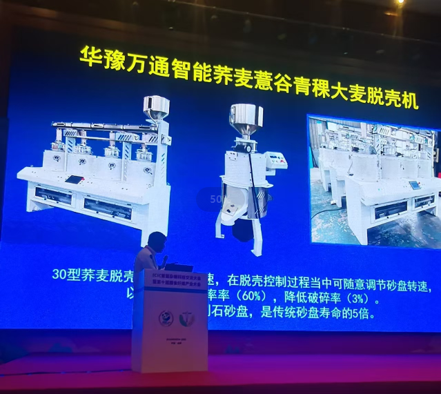 河南工業(yè)大學中國糧谷糧食加工團隊王鳳成教授在大會中向與會者著重介紹了華豫萬通的6款智能雜糧設備的創(chuàng)新發(fā)展及應用。其中,HTY80智能燕麥離心脫殼機和HTQM35D蕎麥脫殼機以其卓越性能成為大會的亮點,這兩款設備在降低生產(chǎn)成本、提高性價比和產(chǎn)出值等性能方面有大幅提升,HTY80智能燕麥離心脫殼機更是憑借其卓越的表現(xiàn)榮獲了產(chǎn)品創(chuàng)新獎。