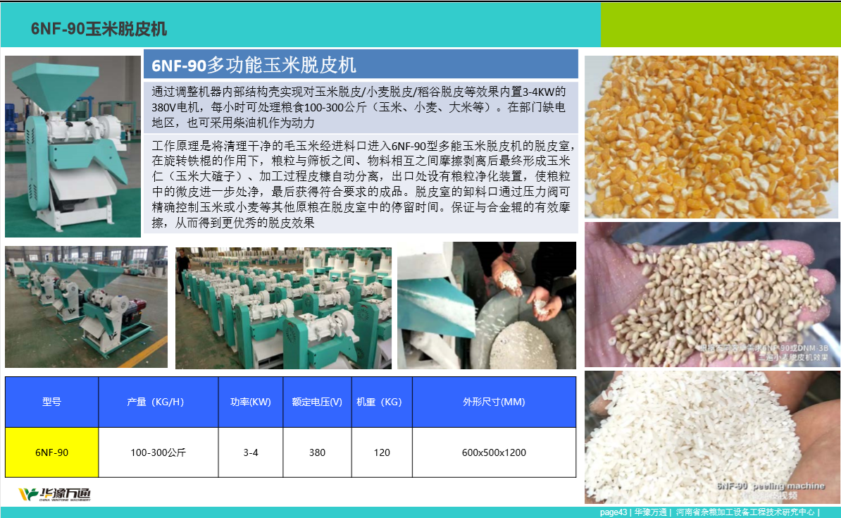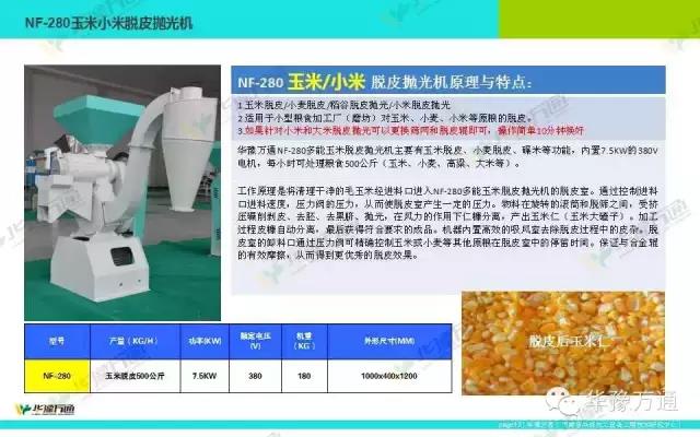 華豫萬(wàn)通牌NF—280型脫皮拋光機(jī),主要用于玉米脫皮去胚、去黑心、拋光的新型專(zhuān)用設(shè)備,可一次或兩次碾成金黃發(fā)亮的玉米仁(大碴),可與我公司的各種制糝、制碴、制粉設(shè)備配套使用。