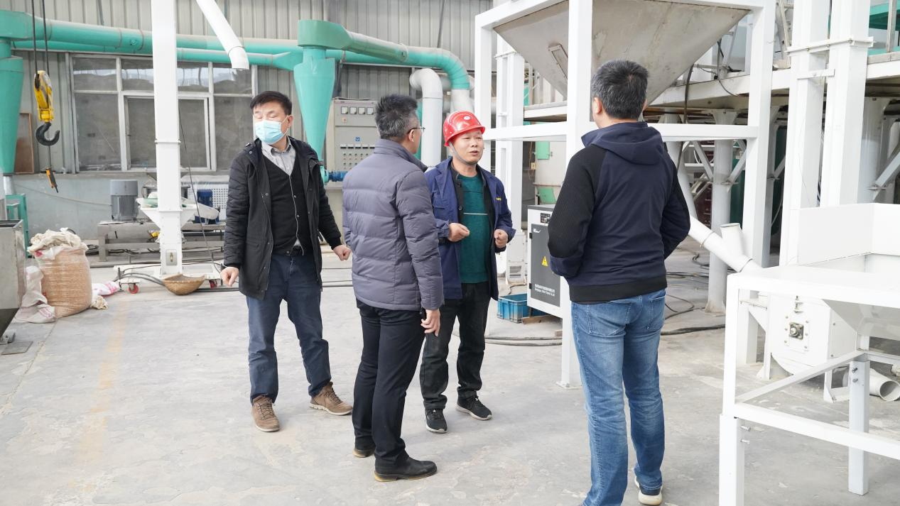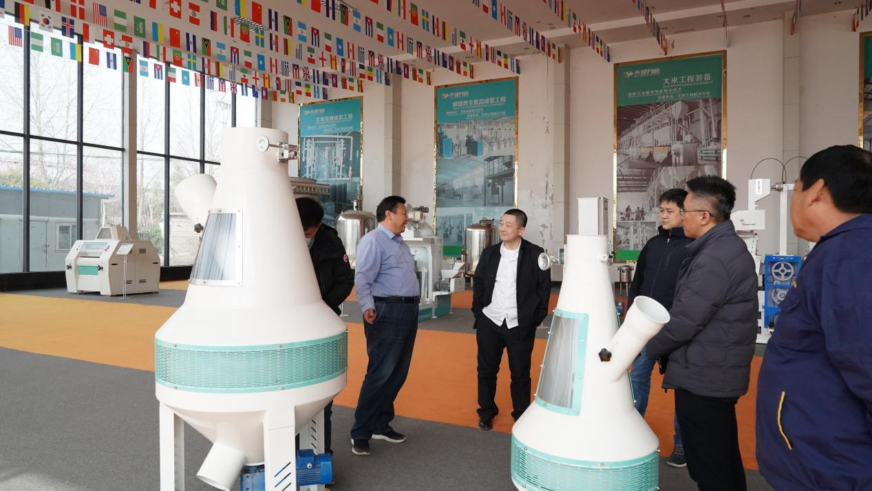 (沈總給客戶介紹雜糧脫皮核心設(shè)備)